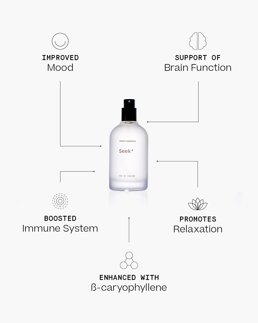 Scent Company produce functional fragrances that use scientifically-enhanced properties to boost your mood. Visually, the project captures the sophistication of a product backed by science, with elements of joy that nod to the nature of an elevated mood.